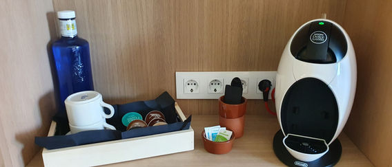 Kitchen with Oven, dishwasher, espresso machine, fridge, freezer, microwave